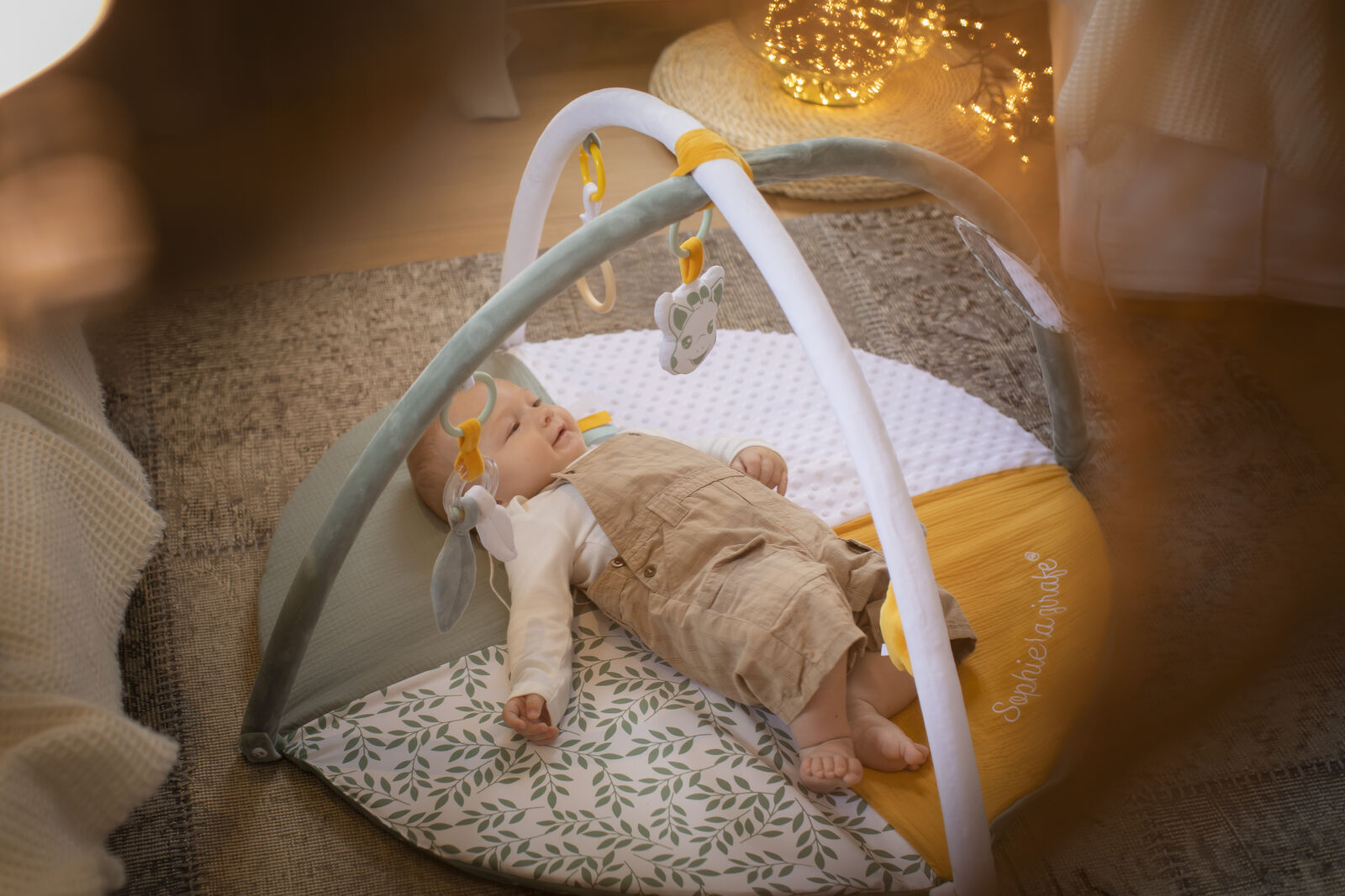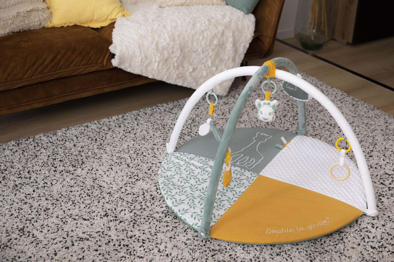 Новата подложка за занимания и гимнастика на Жирафчето Софи предлага перфектни моменти за почивка и игра за бебето, събужда всичките 5 сетива и го забавлява с разнообразните си дейности!