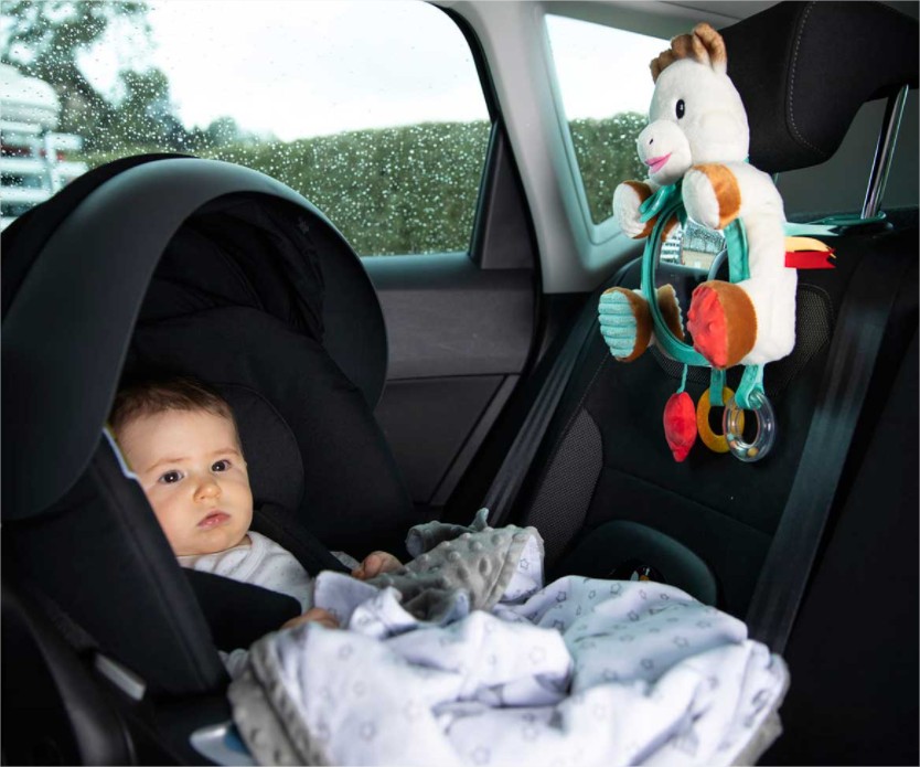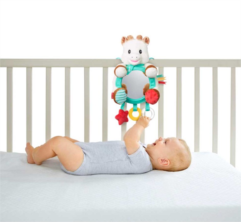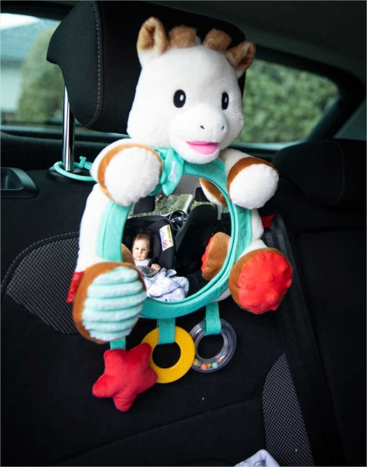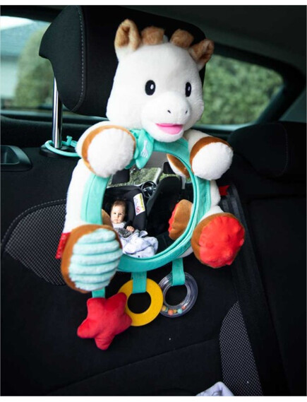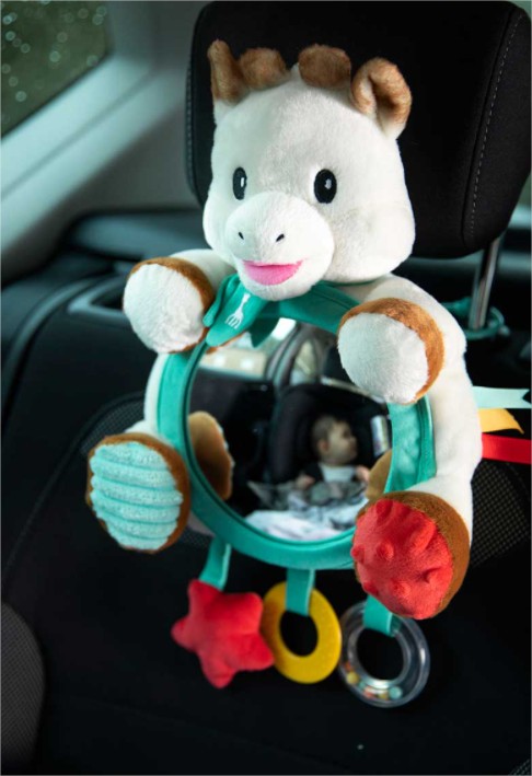 Огледалото за активности на Sophie е идеално за вашето бебе, за да се забавлява в колата, но също и за да наблюдавате бебето си по пътя!