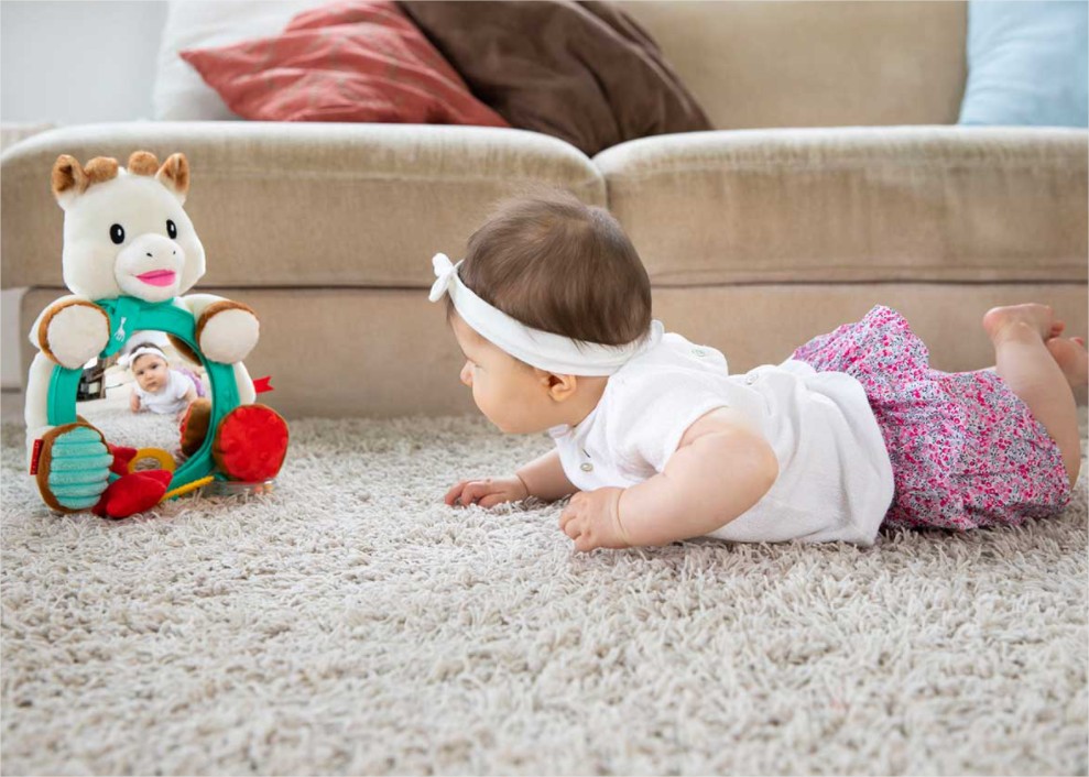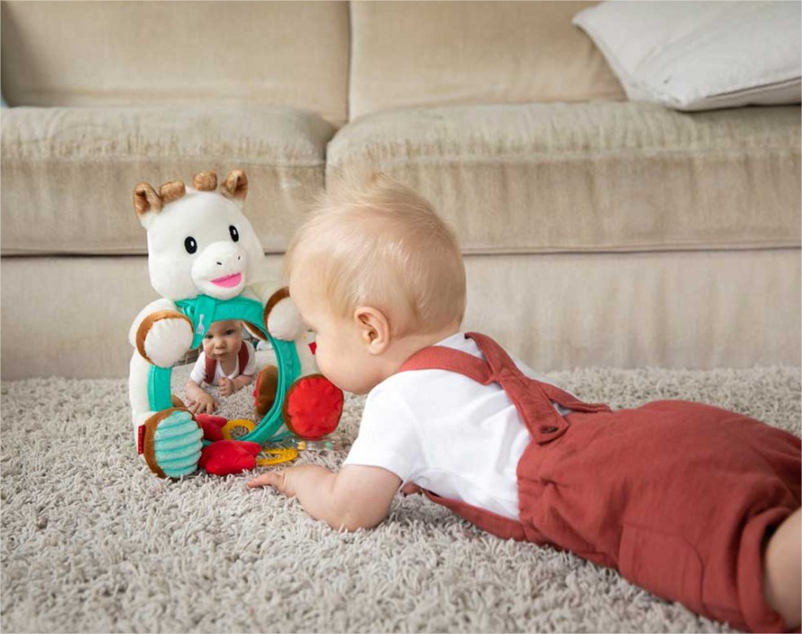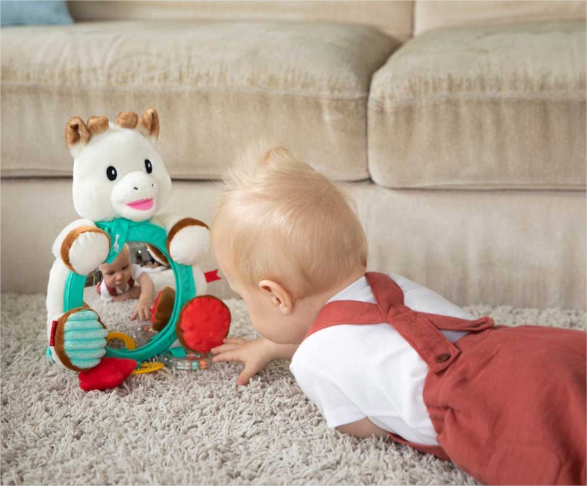 Най-добрата игра на жирафчето Софи е огледалото с множество дейности, защото освен игра и забавление, тя има и образователен характер !