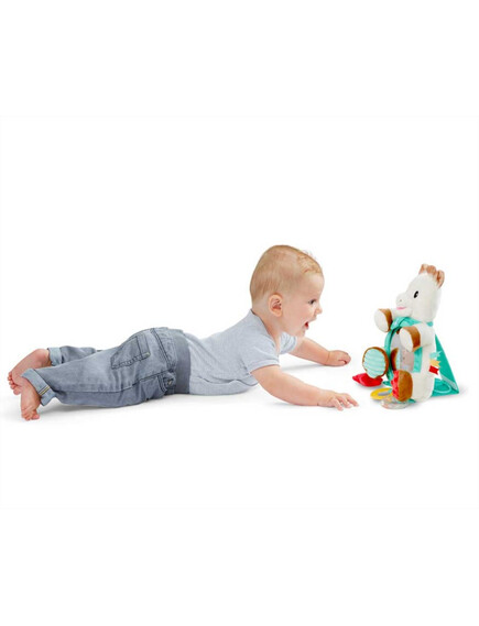 С дрънкалка и гризалка, за да спасите вашето бебе от дискомфорта във венците и да му предложите необходимото облекчение! Кадифена и мека, Софи му дава възможност да открие усещането за допир по най-приятния начин!