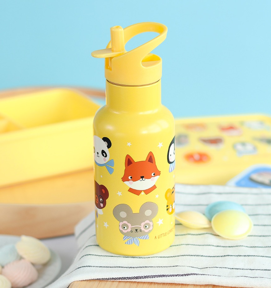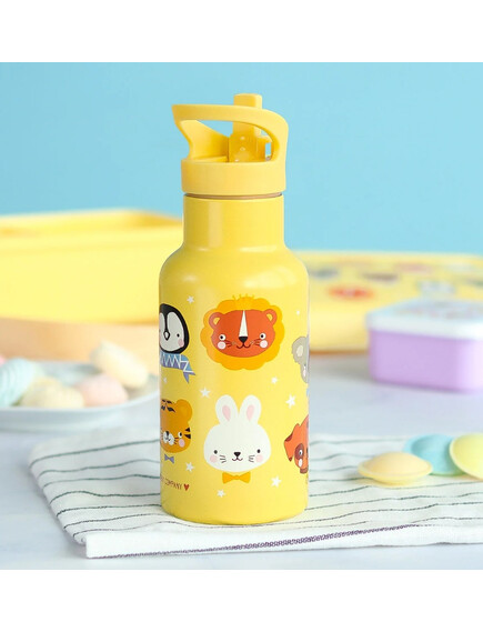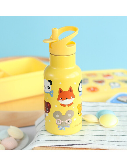A little lovely company: Бутилка от неръждаема стомана със сламка: Animal Friends - 350мл.