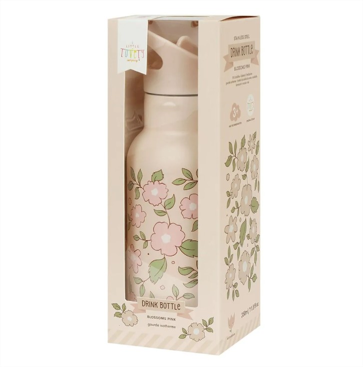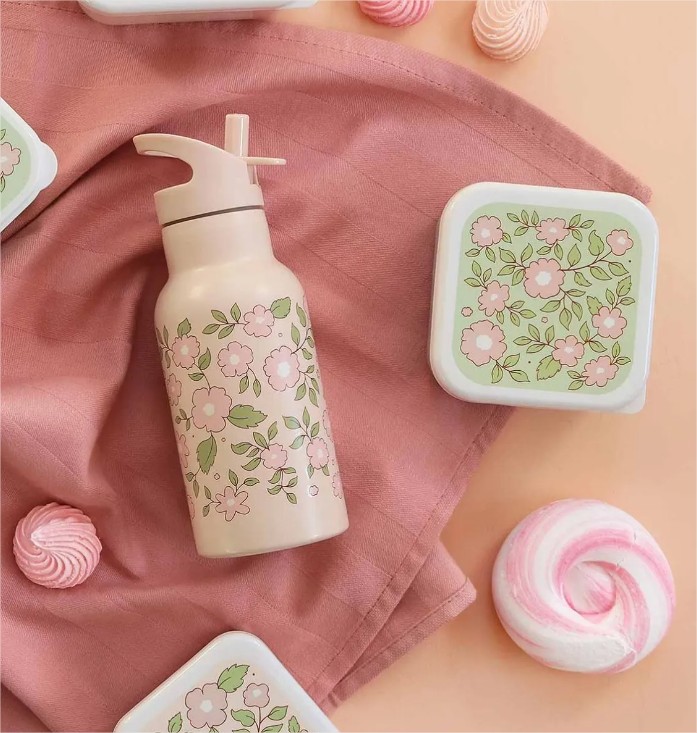 A little lovely company: Бутилка от неръждаема стомана със сламка: Blossoms Pink - 350мл.