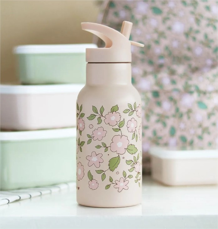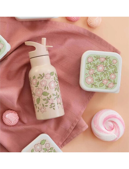 A little lovely company: Бутилка от неръждаема стомана със сламка: Blossoms Pink - 350мл.