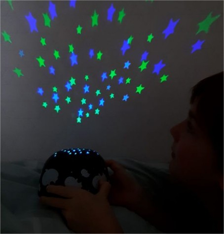 Тези сладки лампи с актуални украски, проектират най-красивите звезди на тавана в детската стая.