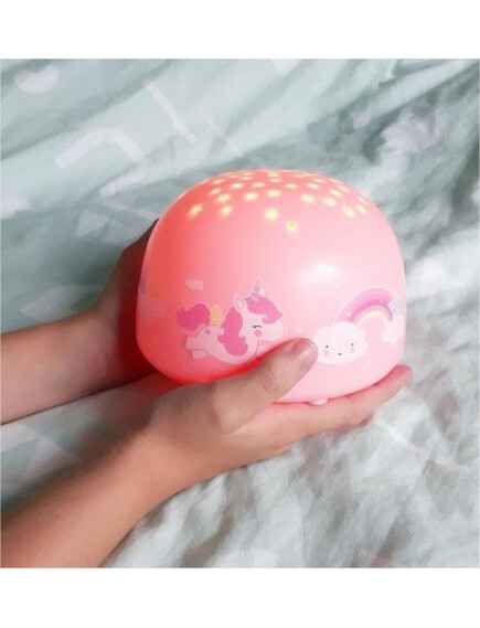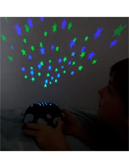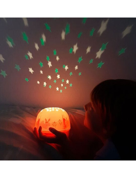 "Леле, какъв вълшебен начин да заспя!" Превключвателят на лампата  предоставя различни цветови опции: дъга, оранжево, зелено или синьо. Полезната функция "Таймер" изключва светлината на проектора автоматично след 30 минути. Вашето малко може да заспива под прекрасното звездно небе всяка нощ. Лампата е преносима, така че можете лесно да я опаковате при пътувания, така че да вземете част от уюта на дома, заедно с Вас.