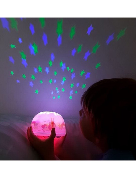 "Леле, какъв вълшебен начин да заспя!" Превключвателят на лампата предоставя различни цветови опции: дъга, оранжево, зелено или синьо. Полезната функция "Таймер" изключва светлината на проектора автоматично след 30 минути. Вашето малко може да заспива под прекрасното звездно небе всяка нощ. Лампата е преносима, така че можете лесно да я опаковате при пътувания, така че да вземете част от уюта на дома, заедно с Вас.