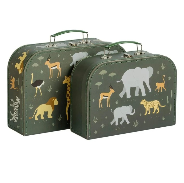 Прекрасен комплект от два куфара за декорация, игра или съхранение!