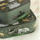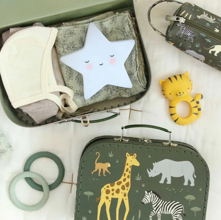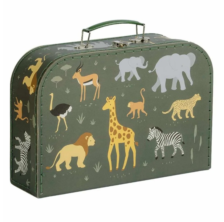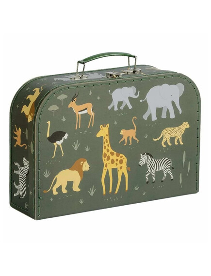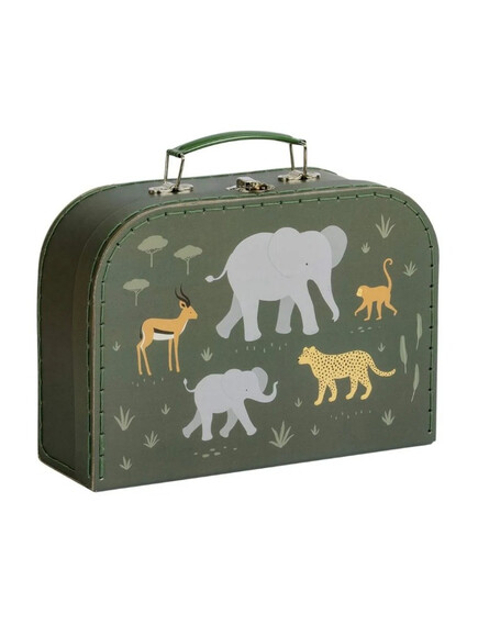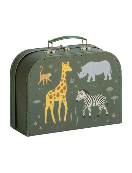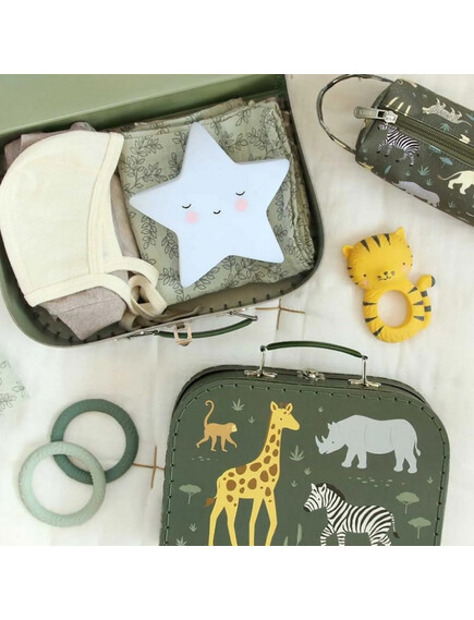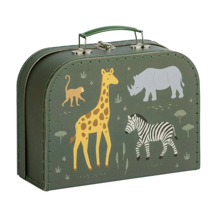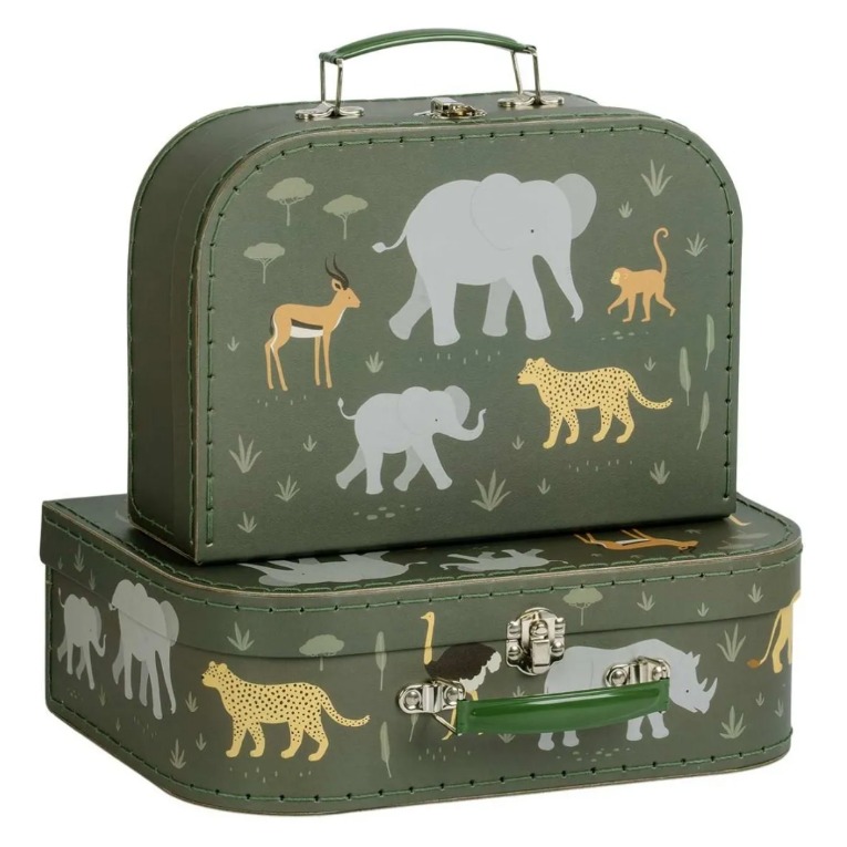 И големият, и малкият куфар са с цветна метална дръжка и закопчалка, която ще пази всички съкровища на вашето мъниче в безопасност.