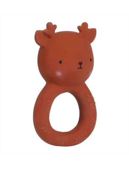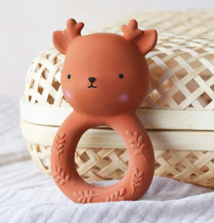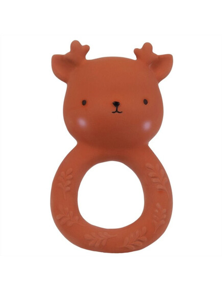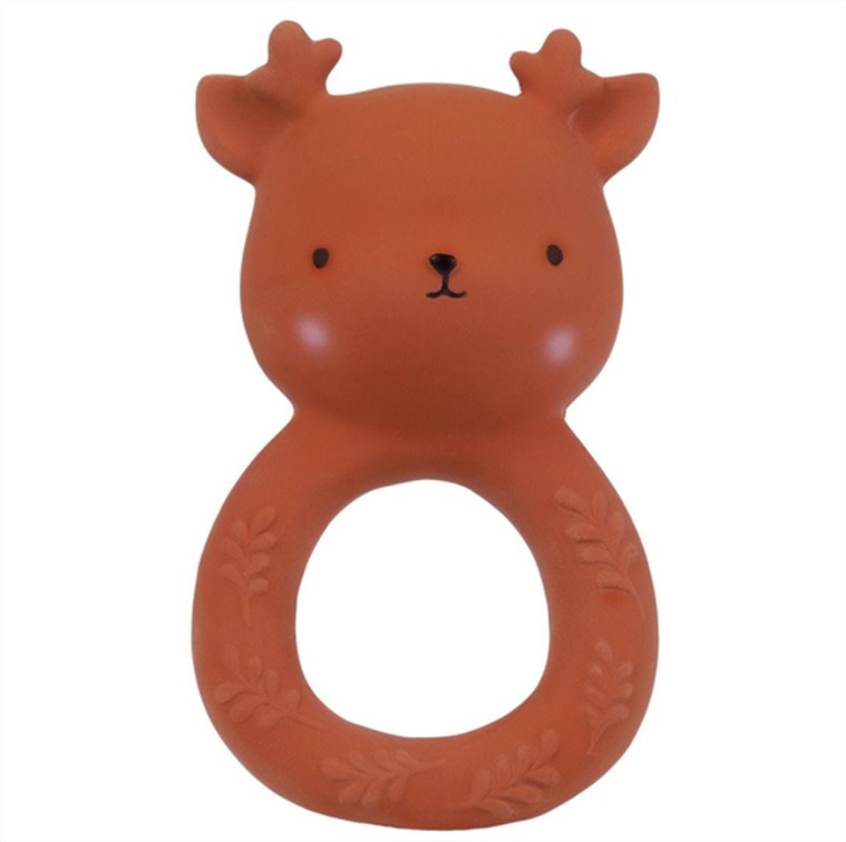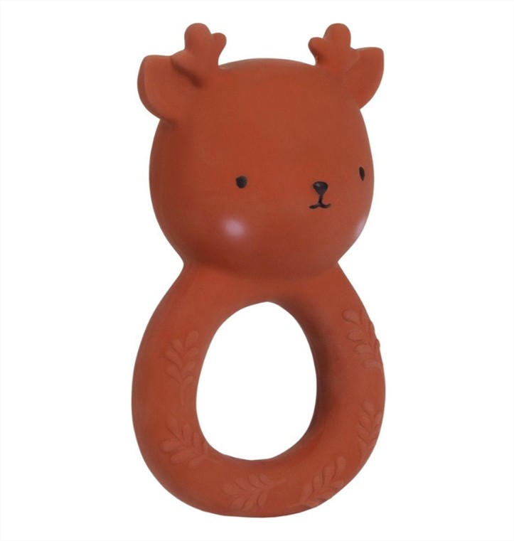 На детето ви му расте зъбче и това му причинава дискомфорт? Нашата чесалка, оформена като еленче, е истинско избавление в периода на сърбящи и болезнени венци! Тя не съдържа вредни материали, направена е от 100% естествен каучук, извлечен от дървото Hevea и има фин и нежен аромат.