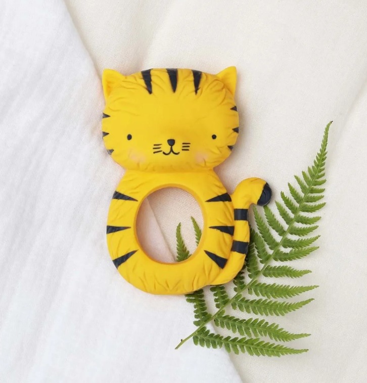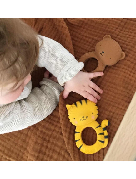 На детето ви му расте зъбче и това му причинава дискомфорт? Нашата чесалка, оформена като тигър, е истинско избавление в периода на сърбящи и болезнени венци! Тя не съдържа вредни материали, направена е от 100% естествен каучук, извлечен от дървото Hevea и има фин и нежен аромат.