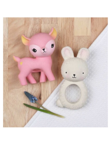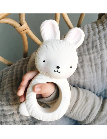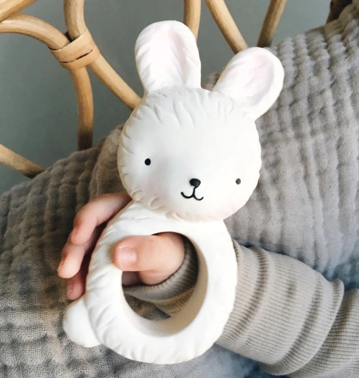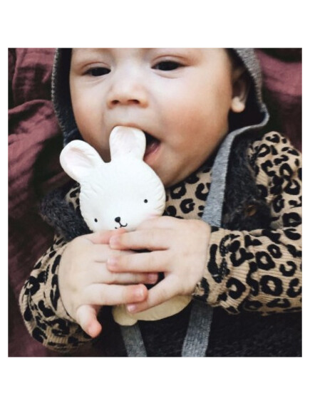 На детето ви му расте зъбче и това му причинава дискомфорт? Нашата чесалка, оформена като зайче, е истинско избавление в периода на сърбящи и болезнени венци! Тя не съдържа вредни материали, направена е от 100% естествен каучук, извлечен от дървото Hevea и има фин и нежен аромат.