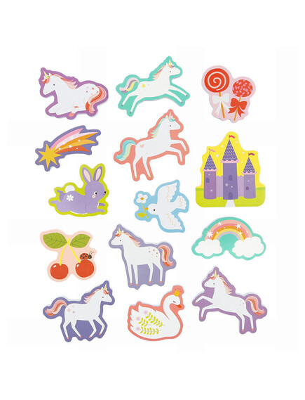 - Части: 14 цветни парчета във формата на различни приказни животни и др.