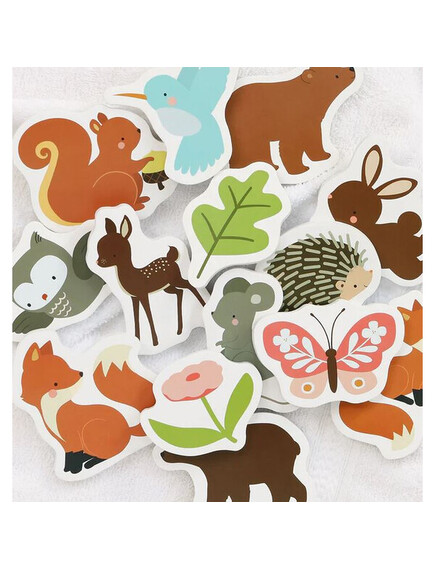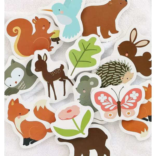 Една страхотна игра за баня, което сме сигурни, че ще очарова вашето дете, особено ако е любител на горските животни! Украсете душа или ваната, докато се къпете. Оставете вашето дете да потопи животните във водата и след това да ги залепи към стената, плочките или едно към друго.