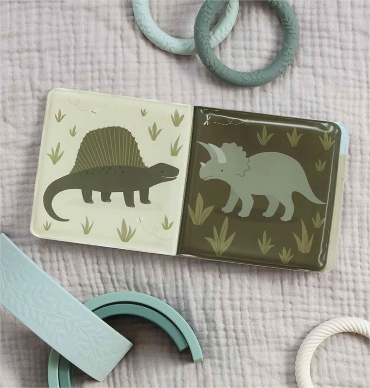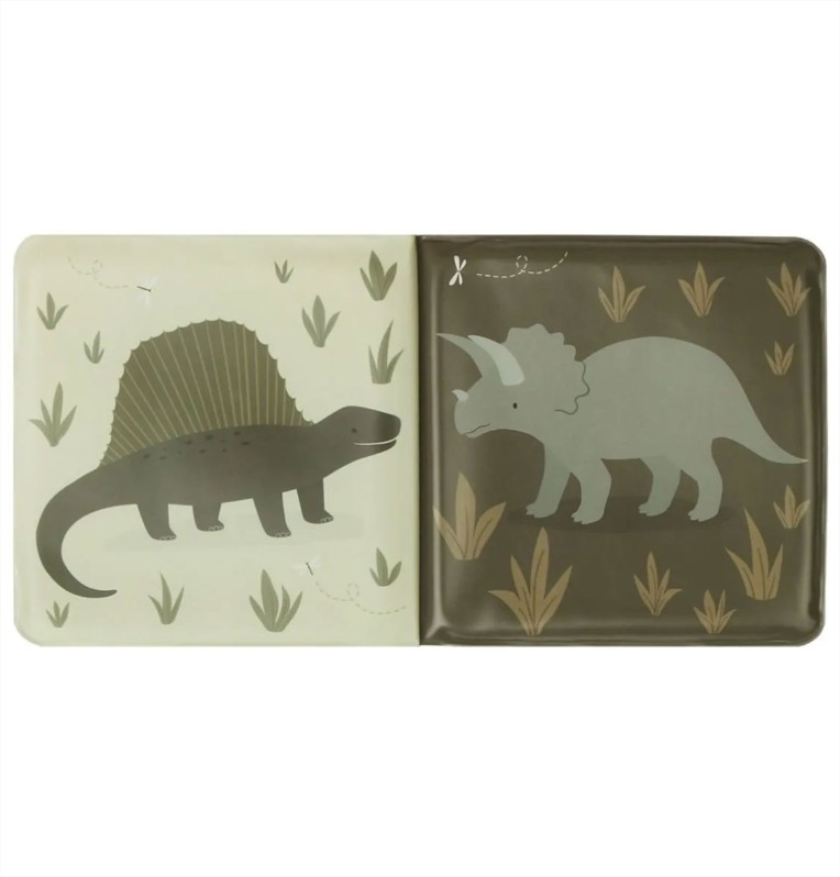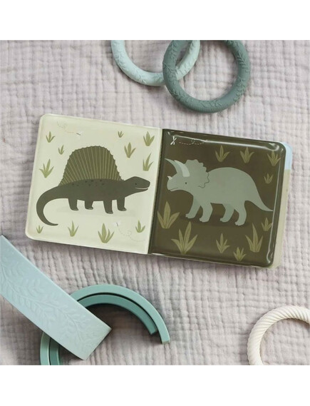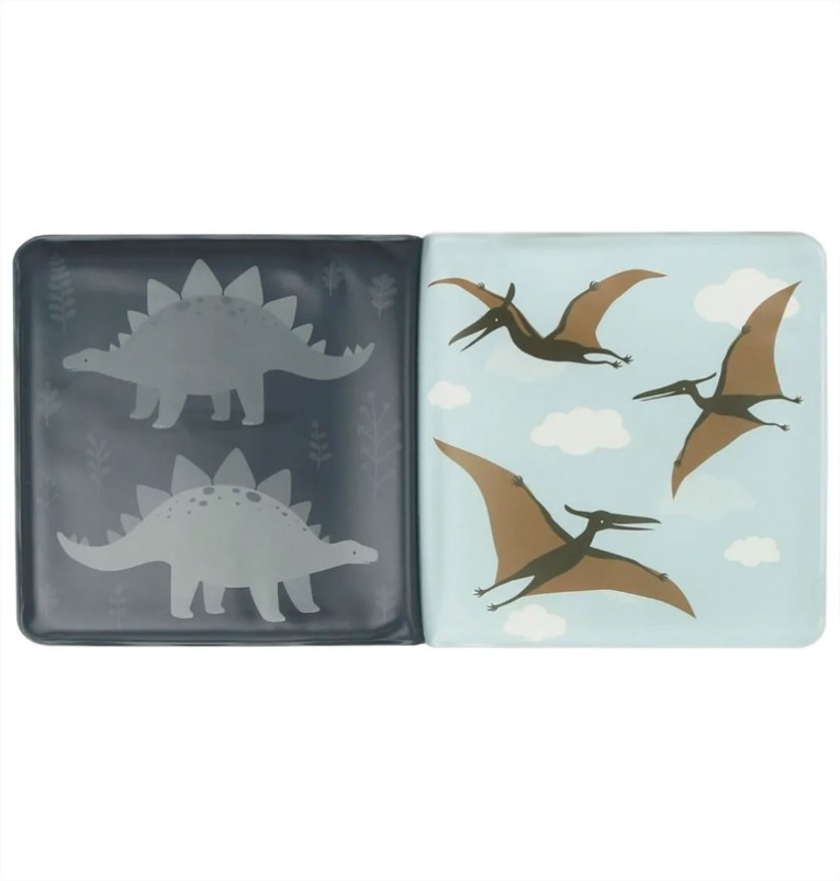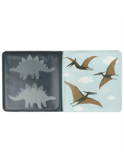 Тази книжка за баня с забавните динозаври е с подходящия размер за ръцете на малките деца и е идеалната играчка за банята: мека, водоустойчива и пълна с прекрасни картинки!