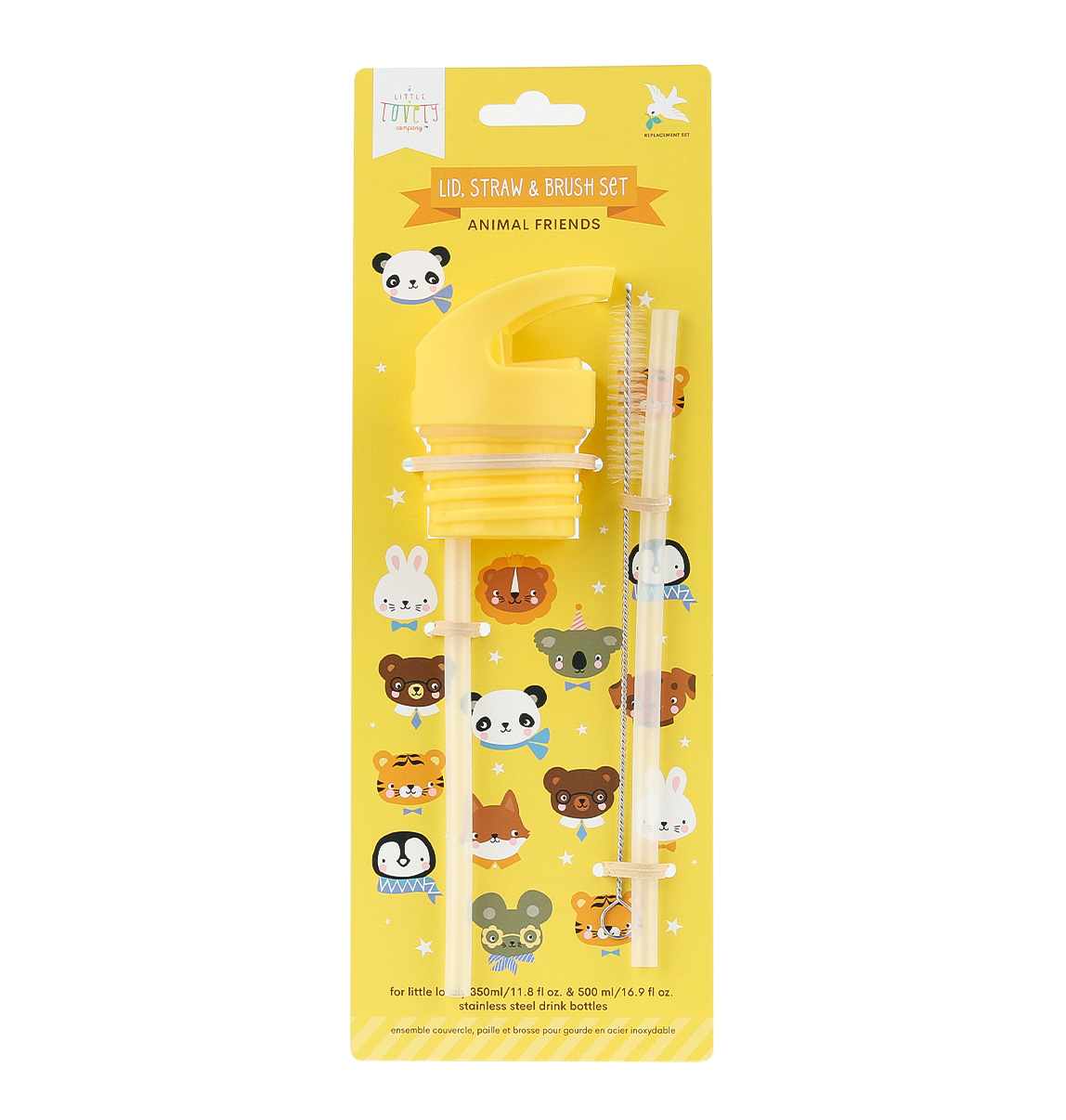 Комплект, съдържащ капаче, сламка и четка за бутилка от неръждаема стомана A Little Lovely Company 350мл.