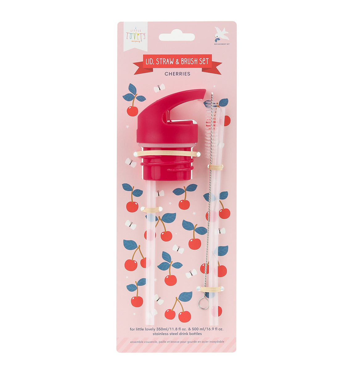 Комплект, съдържащ капаче, сламка и четка за бутилка от неръждаема стомана A Little Lovely Company 350мл.