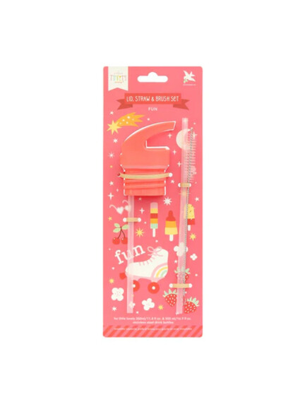 Комплект, съдържащ капаче, сламка и четка за бутилка от неръждаема стомана A Little Lovely Company 350мл.
