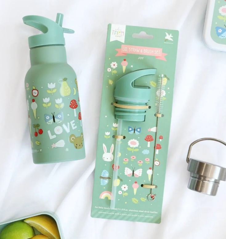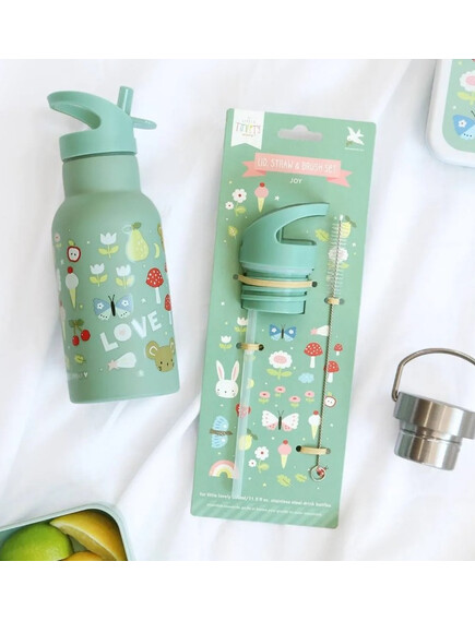 Комплект, съдържащ капаче, сламка и четка за бутилка от неръждаема стомана A Little Lovely Company 350мл.