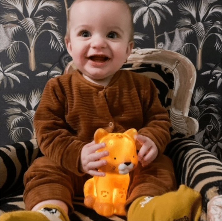 Лео има меко и много приятно сияние в тъмното и прекрасна текстура за малките ръчички, които изследват света. Лампата е идеална за деца, които не обичат да спят на тъмно или които се учат да спят сами в стаята си.
