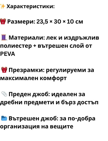 - Размери: 23,5 х 30 х 10 см