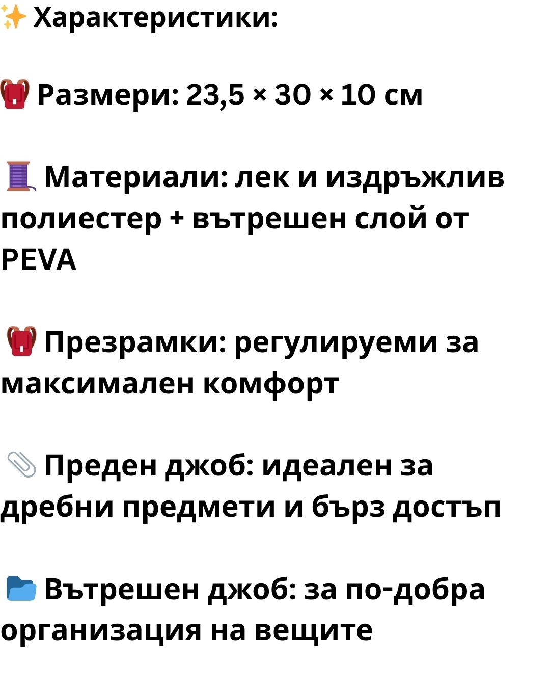 Малки симпатични раници в идеален размер за детска градина, в любими дизайни и цветове, които ще паснат на останалите артикули от същата колекция.