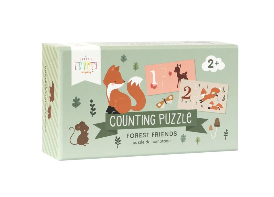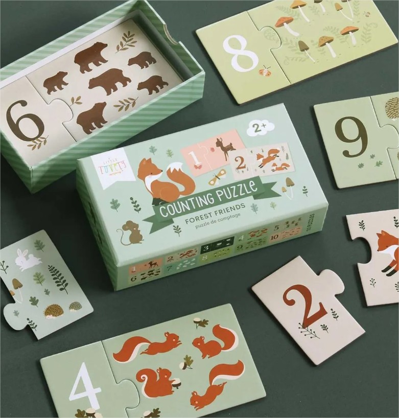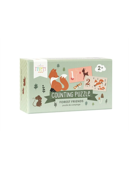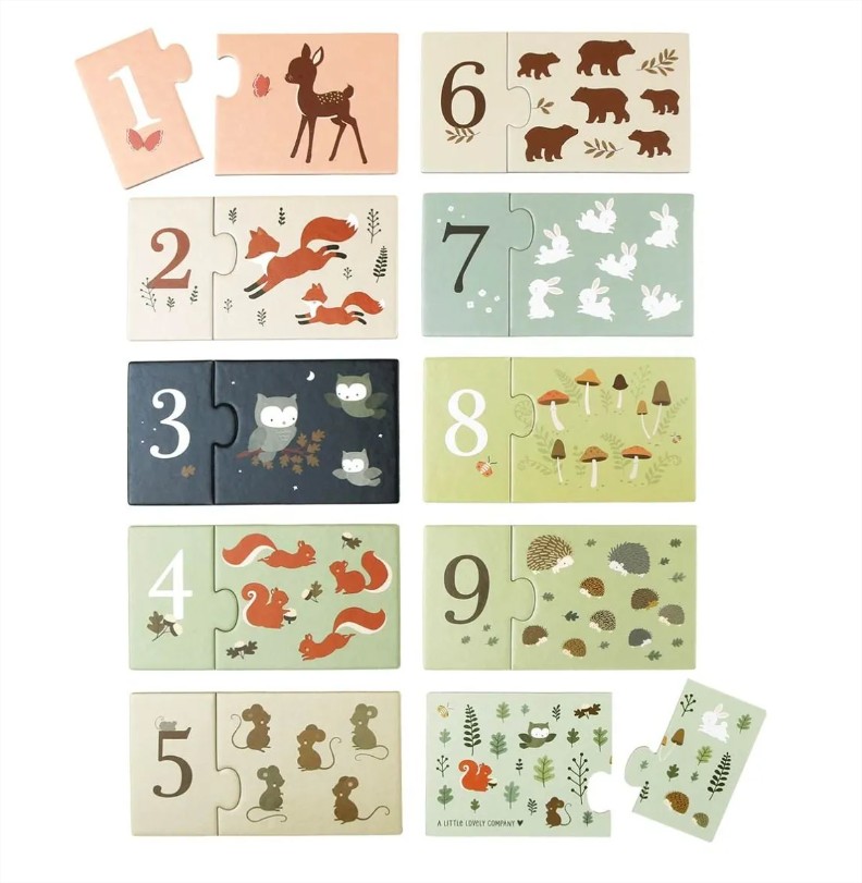 Научете се да броите от едно до десет с този прекрасен комплект с любимите горски приятели от A little lovely company! Включва 10 индивидуални пъзела, с число от едната страна и горските герои, които да преброите от другата. Образователна и забавна игра, изработена от дебел картон, така че малките ръчички да могат лесно да боравят с нея.