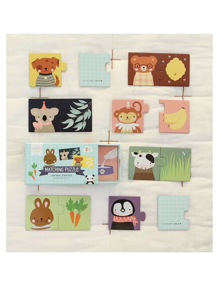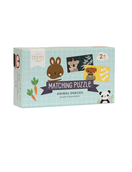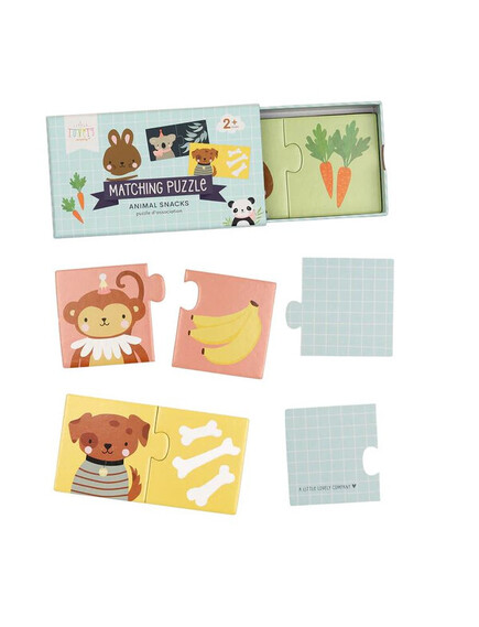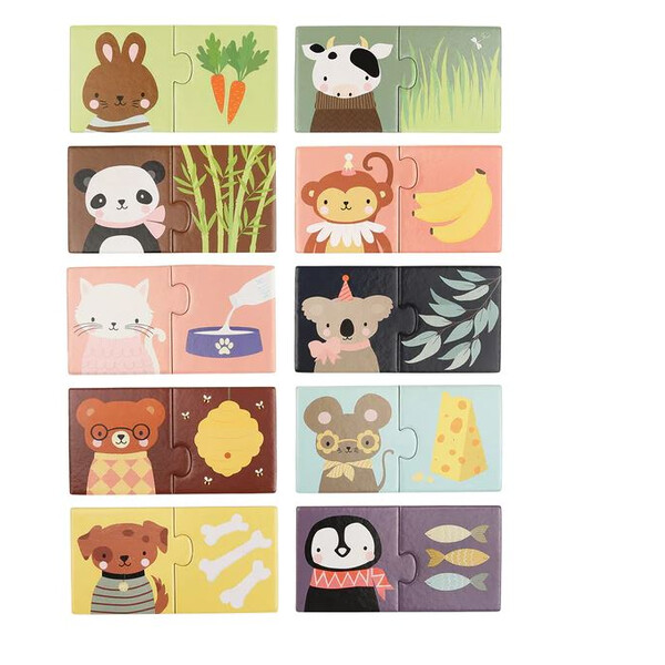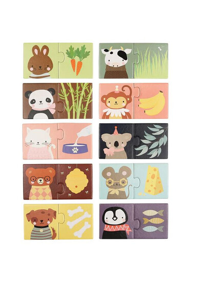 Включва 10 индивидуални пъзела с животинки от едната страна и различни храни, които да свържете. Образователна и забавна игра, изработена от дебел картон, така че малките ръчички да могат лесно да боравят с нея.