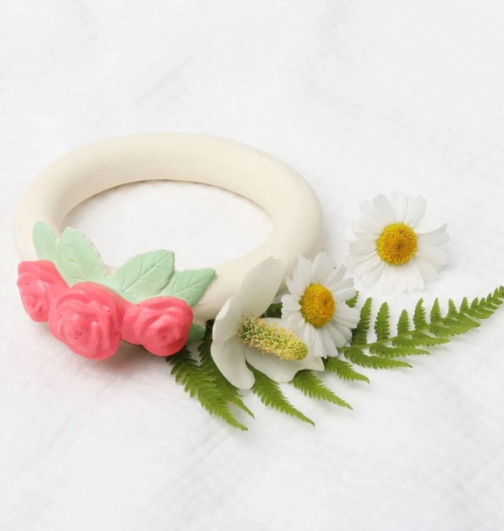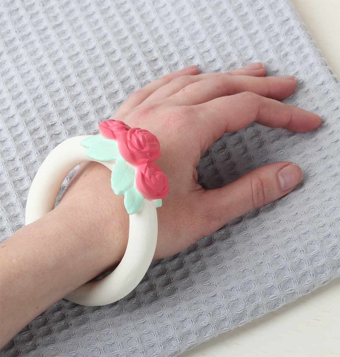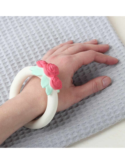 На детето ви му расте зъбче и това му причинава дискомфорт? Нашият букет от рози е истинско избавление в периода на сърбящи и болезнени венци! Той не съдържа вредни материали, направена е от 100% естествен каучук, извлечен от дървото Hevea и има удобна форма за държане от малки ръчички.