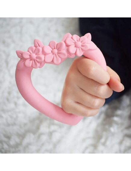 На детето ви му расте зъбче и това му причинава дискомфорт? Нашето цветно сърце е истинско избавление в периода на сърбящи и болезнени венци! То не съдържа вредни материали, направена е от 100% естествен каучук, извлечен от дървото Hevea и има удобна форма за държане от малки ръчички.