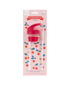 Комплект, съдържащ капаче, сламка и четка за бутилка от неръждаема стомана  A Little Lovely Company  350мл. Характеристики : Материал : Капаче - PP,  Сламка - PE, Уплътнение - силикон Съвпада с бутилката за напитки от неръждаема стомана - "Cherries" -350ml  Инструкции...