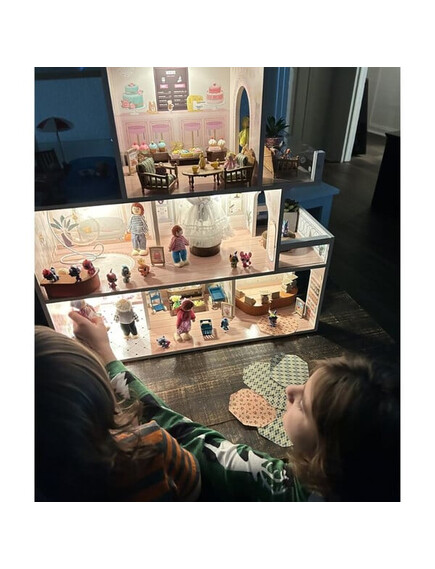 Осветлението на всеки етаж може да се регулира независимо, позволявайки на детето да създава различни атмосфери. Дълго натискане регулира яркостта, а кратко – включва и изключва лампите.