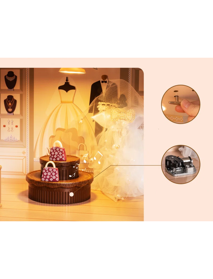 Музикалната функция с въртящия се механизъм в ателието за мода добавя още повече магия към играта. ????
