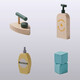 Комплектът включва държач за сапун, ютия и препарати за пране, а крановете се въртят.