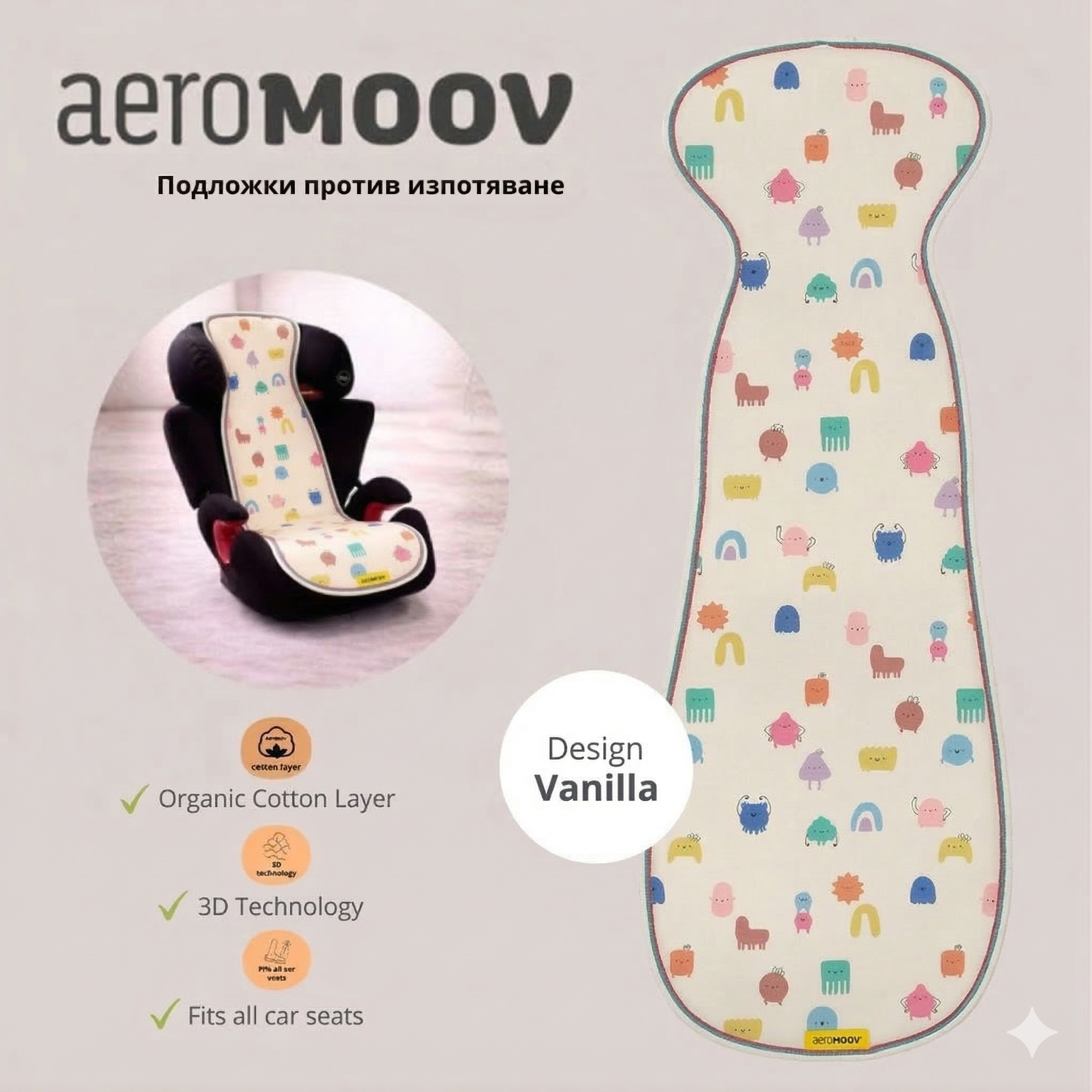 Aeromoov Air Layer - Група 2 Подложки против изпотяване за столче за кола (15-36 кг) и някои видове колички - Дизайн по избор [CLONE]