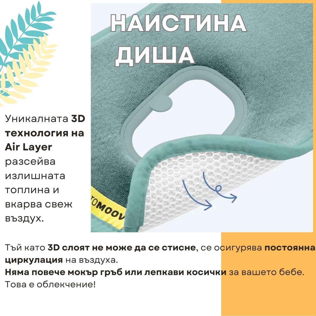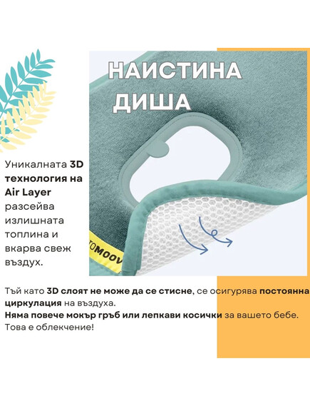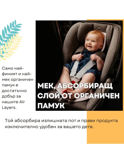 AeroMoov Air Layer са проектирани специално, за да поддържат вашето дете свежо и сухо в столчето за кола или количката. Специалната 3D технология регулира циркулацията на въздуха под вашето бебе, за да спре натрупването на топлина в горещините. Оттук нататък излетите и пътуванията в топло време ще бъдат приятни и безгрижни, за да е максимално удобно за вас и вашето дете!