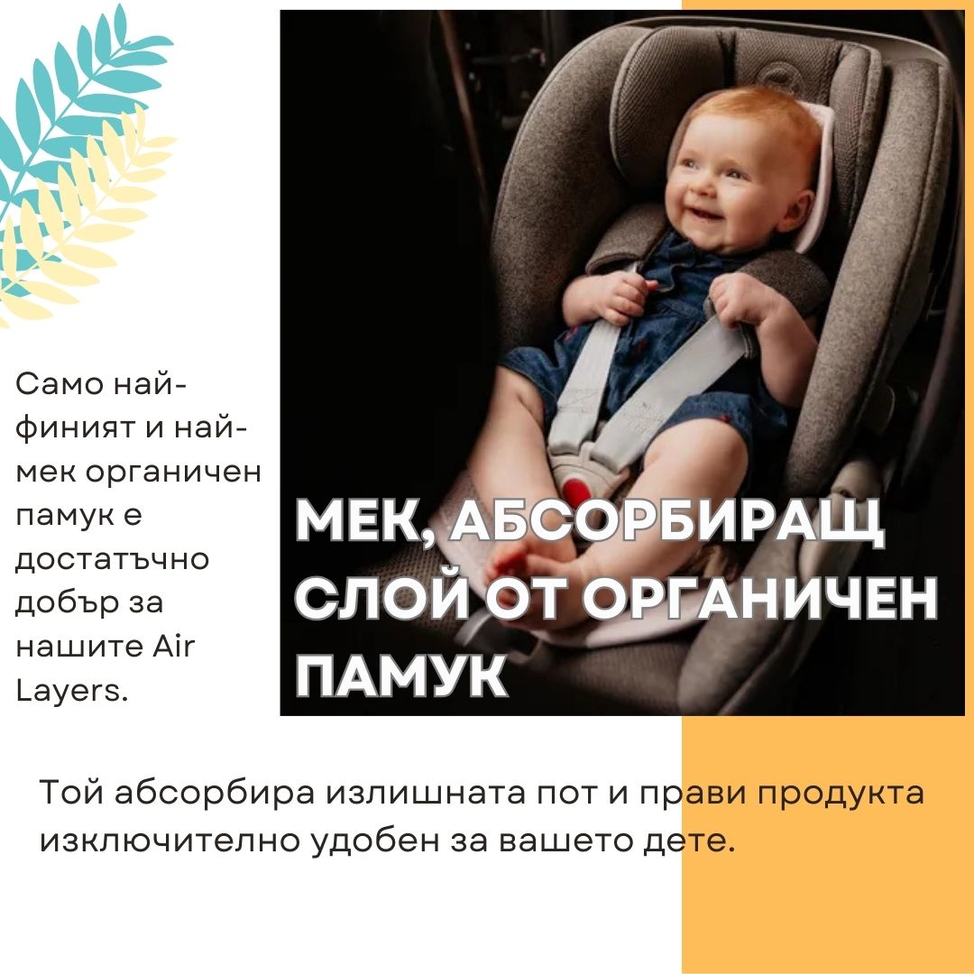 - Осигурява постоянна циркулация на въздуха около гърба, краката и главата на вашето дете