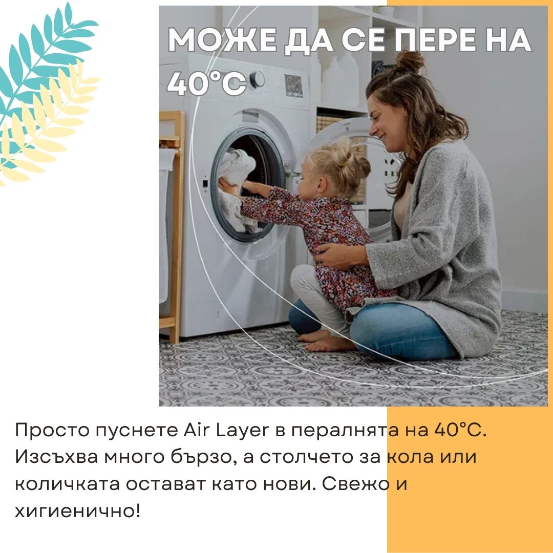Сухиспокойни и релаксирани след всяка разходка с колата или количката. Край на прекаленото изстудяване или претопляне. Въздушният слой на подложката гарантира, че децата ще останат сухи и охладени, а вашето столче за кола или количка ще изглежда по-ново за по-дълго време. За да може всяко ново приключение да е приятно преживяване.