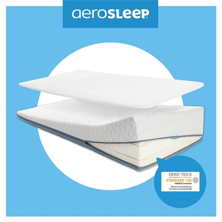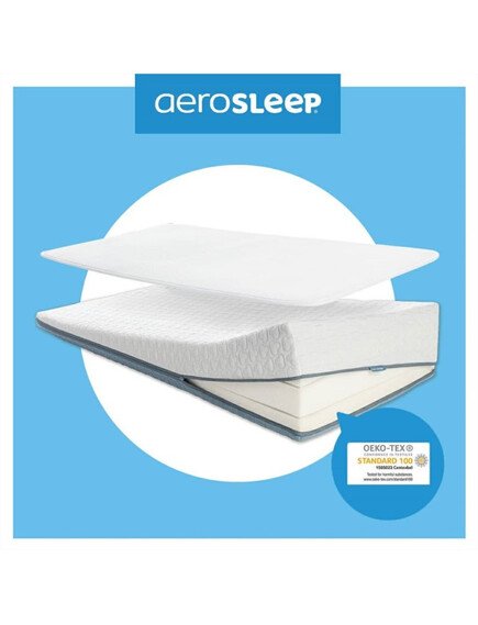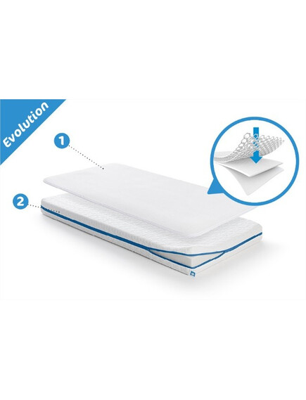 Комплектът от матрак и топ матрак Aerosleep Evolution е иновация в областта на безопасността и комфорта по време на сън. Оптималната опора на гърба и кръста (лумбална опора), свободното дишане и безупречната хигиена, помагат на Вашето ангелче да спи комфортно през цялата нощ. Калъфът на матрака е подвижен и може да се пере в перална машина на 60°С! Перфектната комбинация за безопасен, блажен и луксозно комфортен сън.