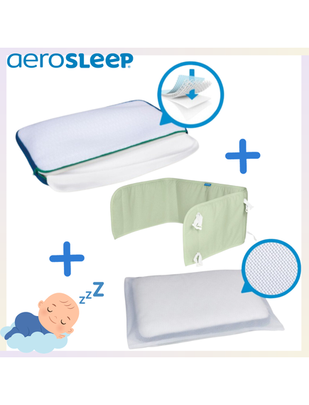 Aerosleep - Super Pack - Възглавница за безопасен сън размер M + Калъфка Aerosleep размер M + Aerosleep - Обиколник 180 x 35 cm с цвят по избор
