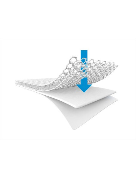 Абсорбиращ слой(точно под въздушния), който поглъща всякакъв вид течност, така че ако вашето дете се намокри през нощта, но не ви сигнализира, то абсорбиращият слой ще изтегли течността и благодарение на въдушния слой ще изсъхне много бързо и вашето бебе отново ще спи на сухо.