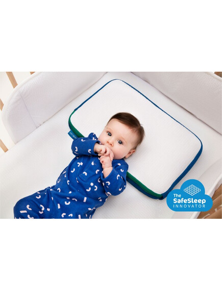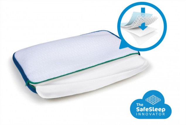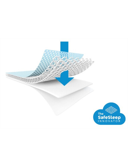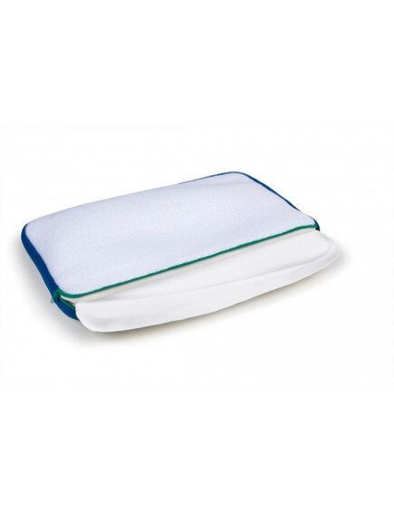 - Първият, най-външен и най-важен слой, който влиза в контакт с кожата на детето, представлява свалящ се и перящ се калъф с 3D структура. Тази структура позволява на детето да диша свободно, дори обърнато с лице към възглавницата. Също така осигурява евакуация на излишната топлина и регулира температурата около главата на детето. Специалният калъф пази възглавницата хигиенична! Дори да се нацапа с пот, мляко, вода или слюнка, течността ще проникне през клетъчния слой и ще се попие от абсорбиращия. При по-обилно намокряне, това което не се абсорбира, ще попадне върху третия водоустойчив слой и няма шанс да стигне до матрака на бебето.