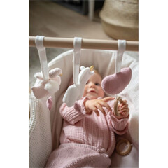 Красива висяща играчка с зайчета! Закачете я на количката или бебешкото кенгуру и вашето бебе ще се забавлява, докато прекарва времето си щастливо! Подходяща от новородено. Състав: памук и полиестер Дължина: 49 см Възраст: 0 + месеца