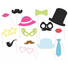 Направете най-забавните и запомнящи се снимки с децата и приятели с тези аксесоари!  Носете мустаци, чанти, очила и други елементи, които да направят снимките ви незабравими и да ви донесат много весели спомени!  Пакетът включва 14 броя парти аксесоари.