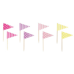 Знаменца на клечка в пастелни цветове, идеални за детски партита и babyshowers! Декорирайте сладкиши, хапки и масата като цяло за да я направите наистина специална!  Размери: 16 * 9 см Пакетът съдържа 16 броя.