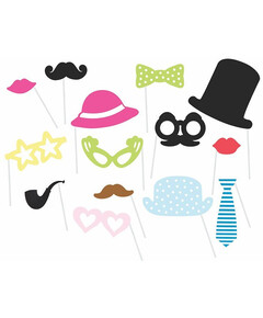 Направете най-забавните и запомнящи се снимки с децата и приятели с тези аксесоари!  Носете мустаци, чанти, очила и други елементи, които да направят снимките ви незабравими и да ви донесат много весели спомени!  Пакетът включва 14 броя парти аксесоари.