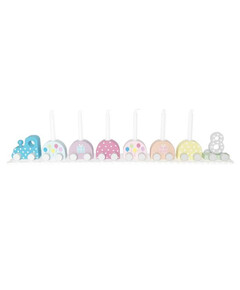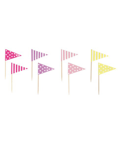 Знаменца на клечка в пастелни цветове, идеални за детски партита и babyshowers! Декорирайте сладкиши, хапки и масата като цяло за да я направите наистина специална!  Размери: 16 * 9 см Пакетът съдържа 16 броя.