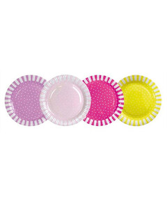 Картонените чинии в различни цветове, идеални за детски партита и бейбишауър! Различните модели ще направят вашата маса уникална! Диаметър 23 см Пакетът включва 8 чинии.