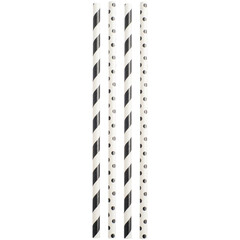 Парти сламки в черно-бели цветове, идеални за детски партита и бейбишауър. Този продукт със сигурност ще направи вашата маса специална! Опаковката включва 24 сламки.