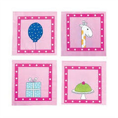 Хартиени салфетки в пастелено розов цвят, идеални за детски партита и бейбишауър. Различните модели ще направят вашата маса уникална! Размери 16 * 16см Опаковката съдържа 20 броя.