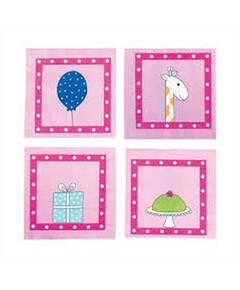 Хартиени салфетки в пастелено розов цвят, идеални за детски партита и бейбишауър. Различните модели ще направят вашата маса уникална! Размери 16 * 16см Опаковката съдържа 20 броя.